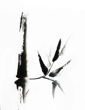 During 2020 I was fortunate to attend a half-day Sumi-e workshop with Ken Lamb* – a master of the art. It reignited a joy in me that I felt back in the 80s when I first tried my hand at it. I will always be a beginner and a wayward one at that, but there was a joy in the quiet of it. I came away with lots of bamboo paintings – pages and pages of just leaves, or just stems, each attempt uniquely different though the aim was always the same.